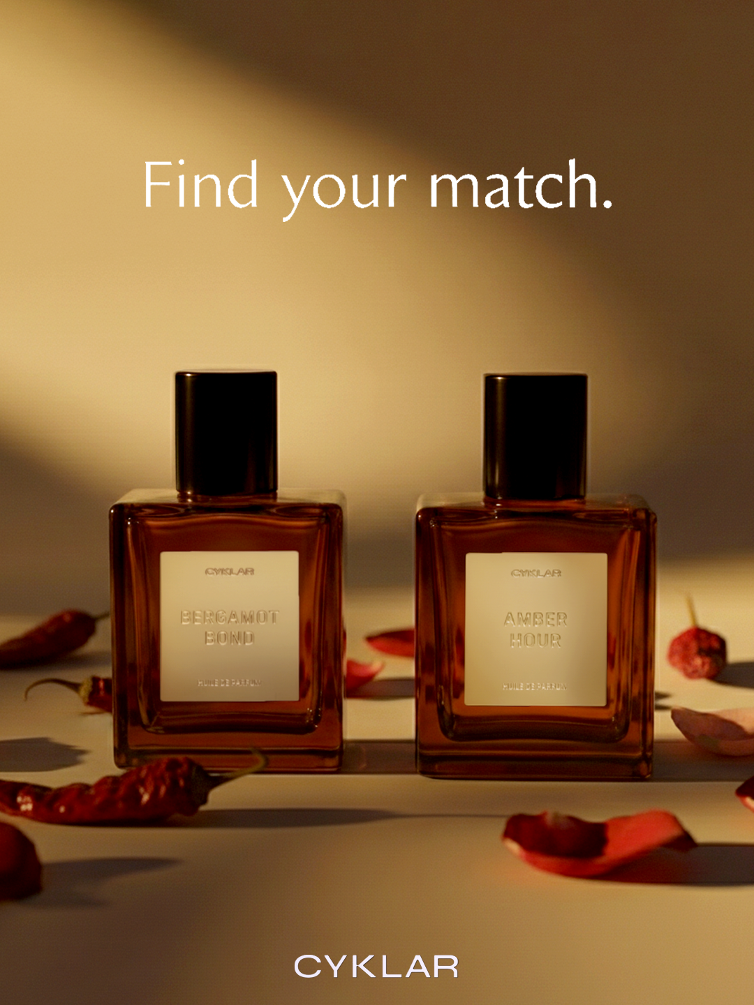 CYKLAR’s Sex Musk and Cedar Supreme pair together beautifully as warm, sexy scents. Their given relationship archetype as part of the campaign would be “Hot & Heavy”. In contrast, Flora Veil and Bergamot Bond are sold together as whimsical, floral scents, creating the “Hopeless Romantics” pairing.