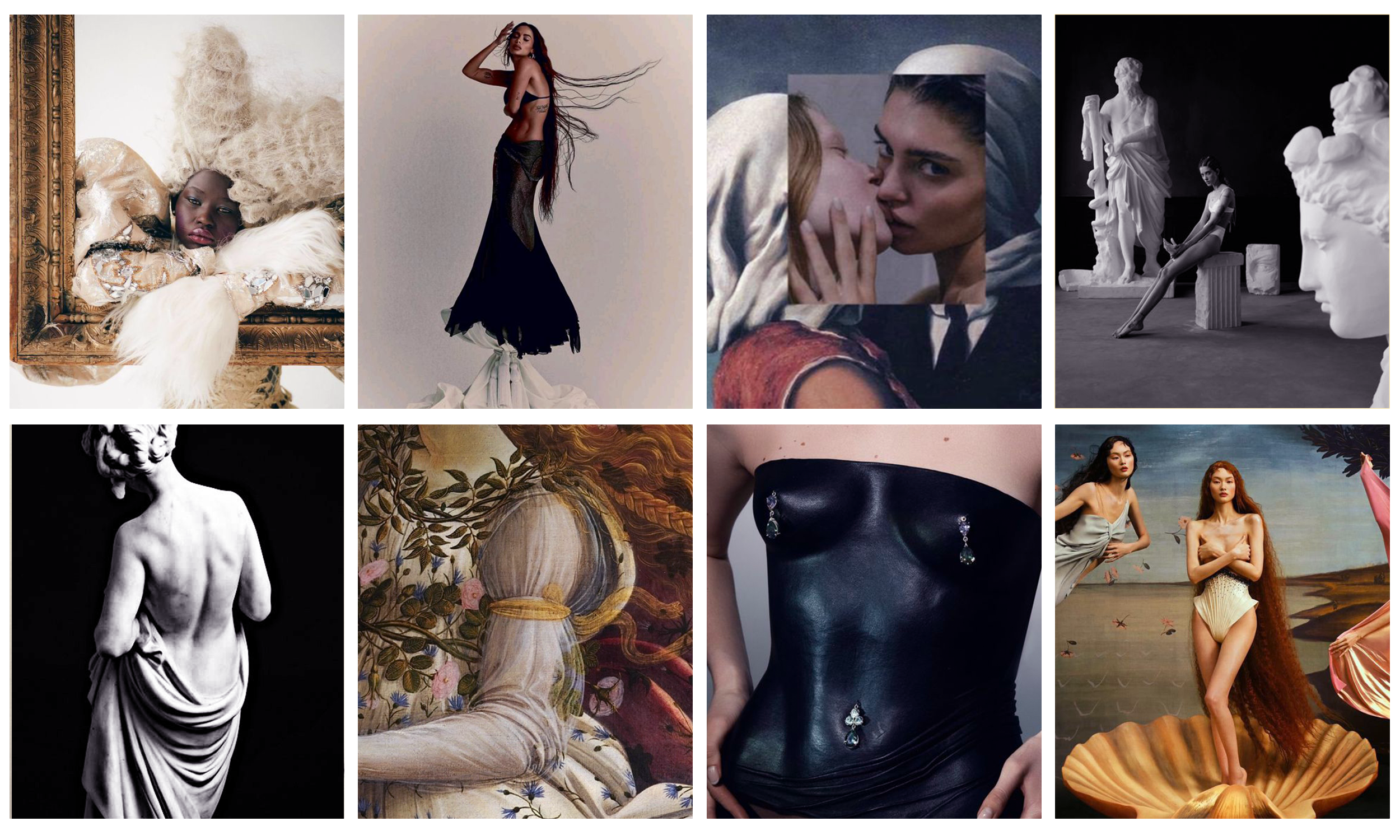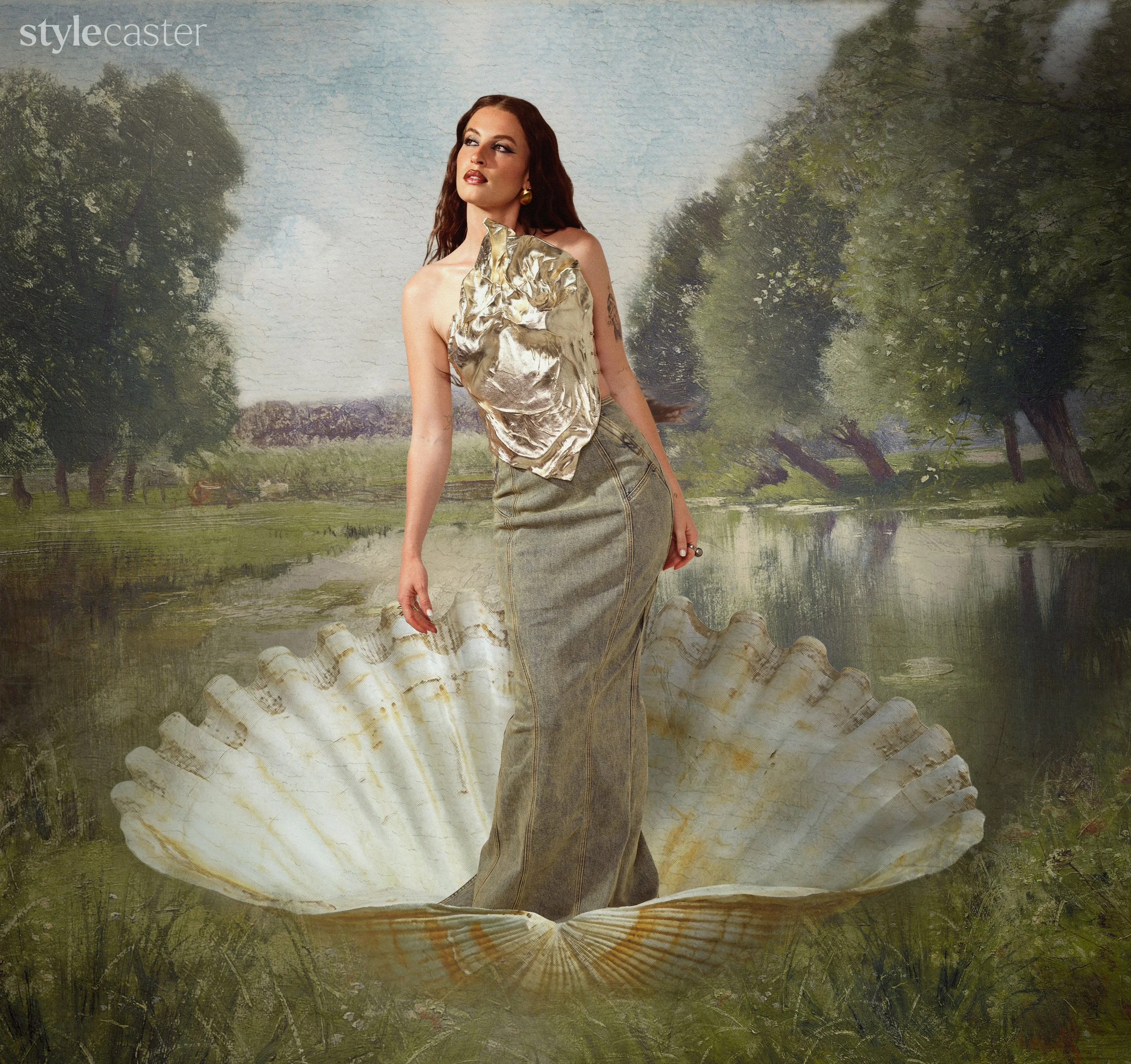 I brought this studio imagery to life with creative image edits to further solidify the theme of art, paying homage to Renaissance works. One image of FLETCHER incorporated her into a painting inspired by the Birth of Venus, while another uses creative editing to add statues around FLETCHER.